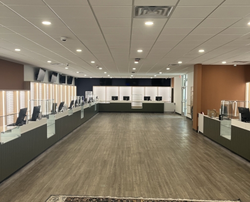 Leveraging our industry expertise and commitment to true partnership, NWGF collaborated with the client to design solutions that best fit their new store’s layout and functionality. Our team provided guidance on product selection, ensuring an optimal fit for the space. Through our full-service fabrication facility, NWGF supplied 440 square feet of 3/8” clear tempered glass with flat polished edges. To ensure seamless delivery, we custom-built palletized crates and coordinated direct out-of state shipping to the retail location—guaranteeing on-time arrival and the highest quality standards.